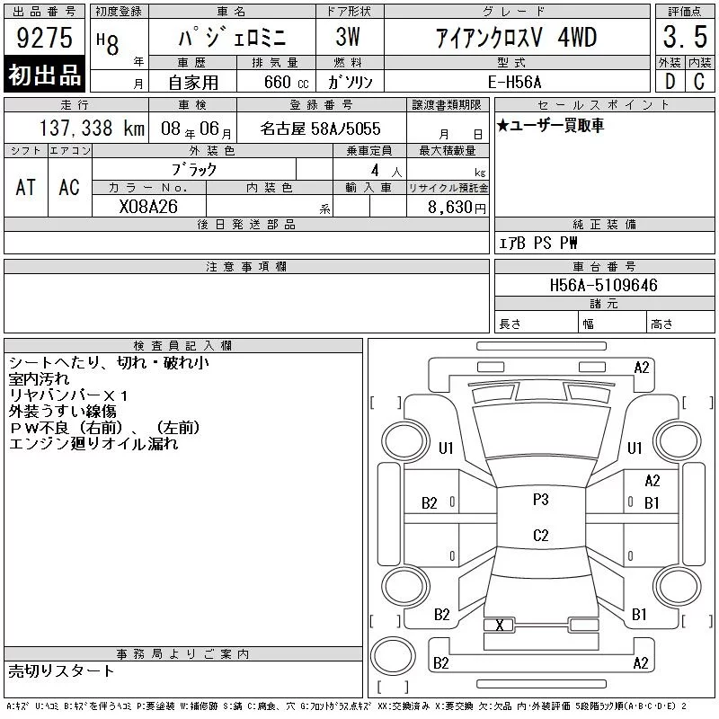 Mitsubishi PAJERO MINI с аукциона Японии CAA Chubu лот № 9275