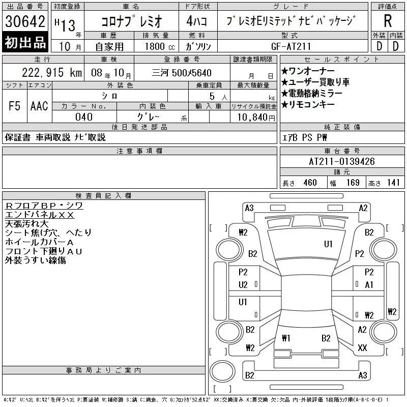 Toyota CORONA PREMIO с аукциона Японии CAA Chubu лот № 30642