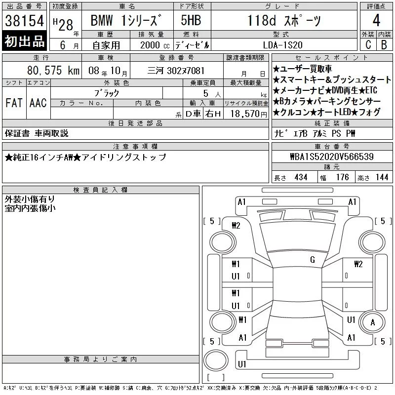 BMW 1-Series с аукциона Японии CAA Chubu лот № 38154