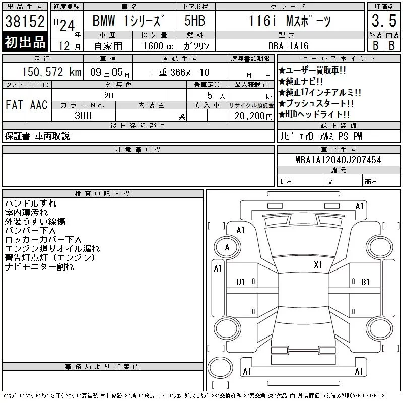 BMW 1-Series с аукциона Японии CAA Chubu лот № 38152
