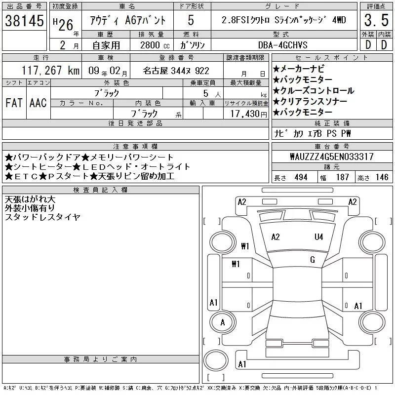 Audi A6 с аукциона Японии CAA Chubu лот № 38145