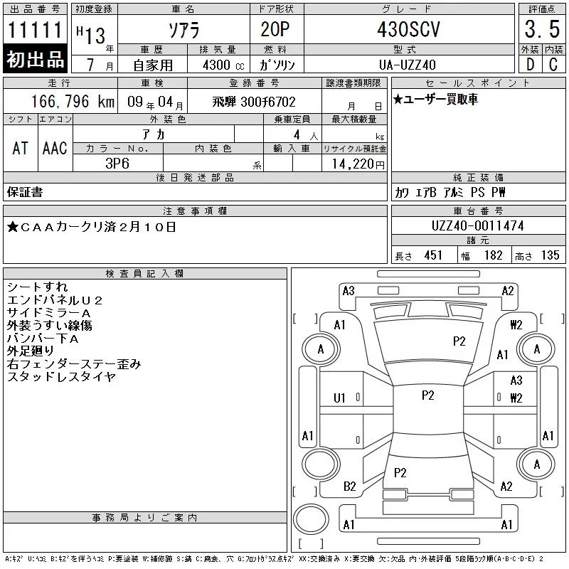 Toyota SOARER с аукциона Японии CAA Chubu лот № 11111