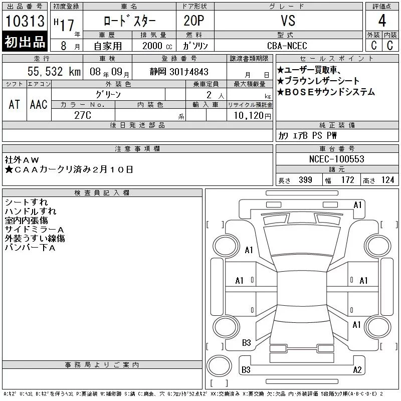 Mazda ROADSTER с аукциона Японии CAA Chubu лот № 10313
