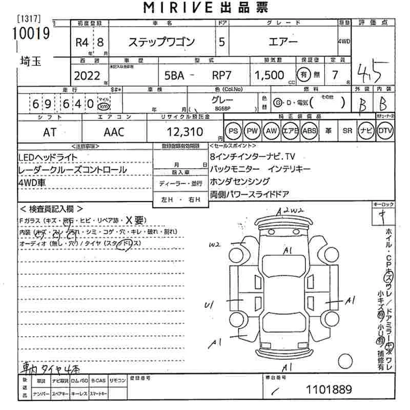 Honda STEP WAGON с аукциона Японии MIRIVE Saitama лот № 10019