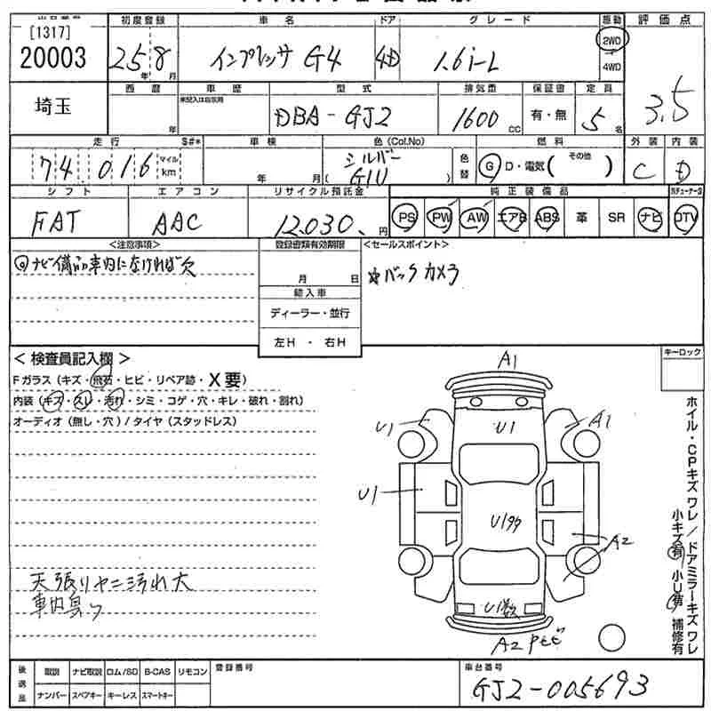 Subaru IMPREZA G4 с аукциона Японии MIRIVE Saitama лот № 20003