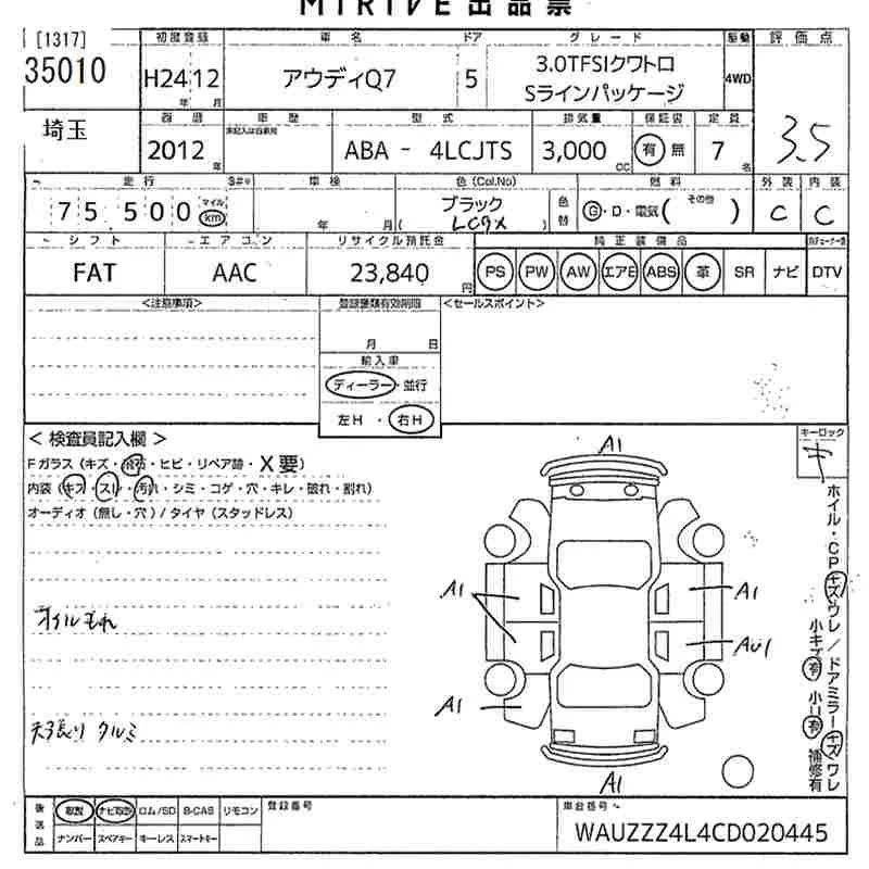 Audi Q7 с аукциона Японии MIRIVE Saitama лот № 35010