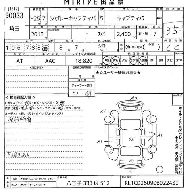 GM CHEVROLET CAPTIVA с аукциона Японии MIRIVE Saitama лот № 90033