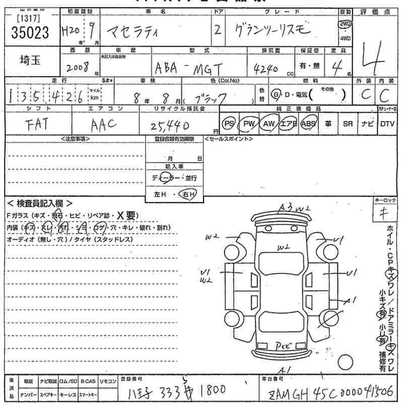 Maserati GRANTURISMO с аукциона Японии MIRIVE Saitama лот № 35023