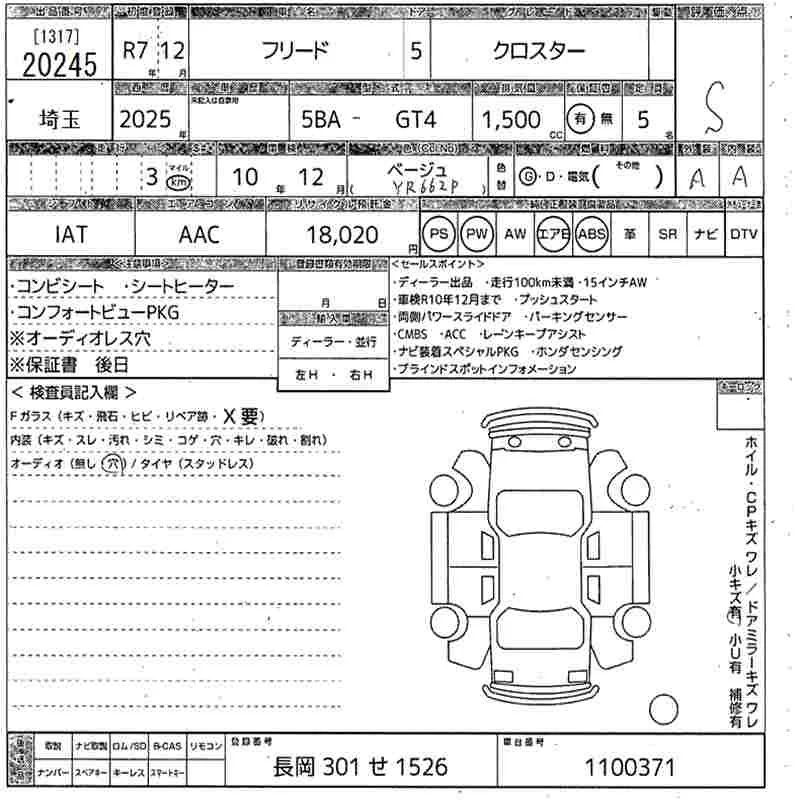 Honda FREED с аукциона Японии MIRIVE Saitama лот № 20245
