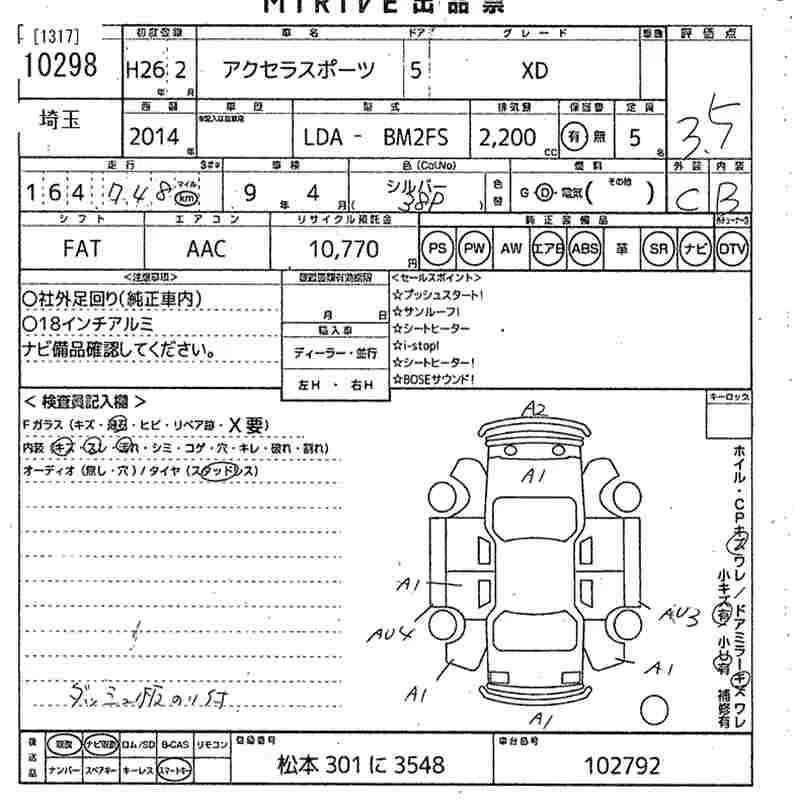 Mazda AXELA с аукциона Японии MIRIVE Saitama лот № 10298