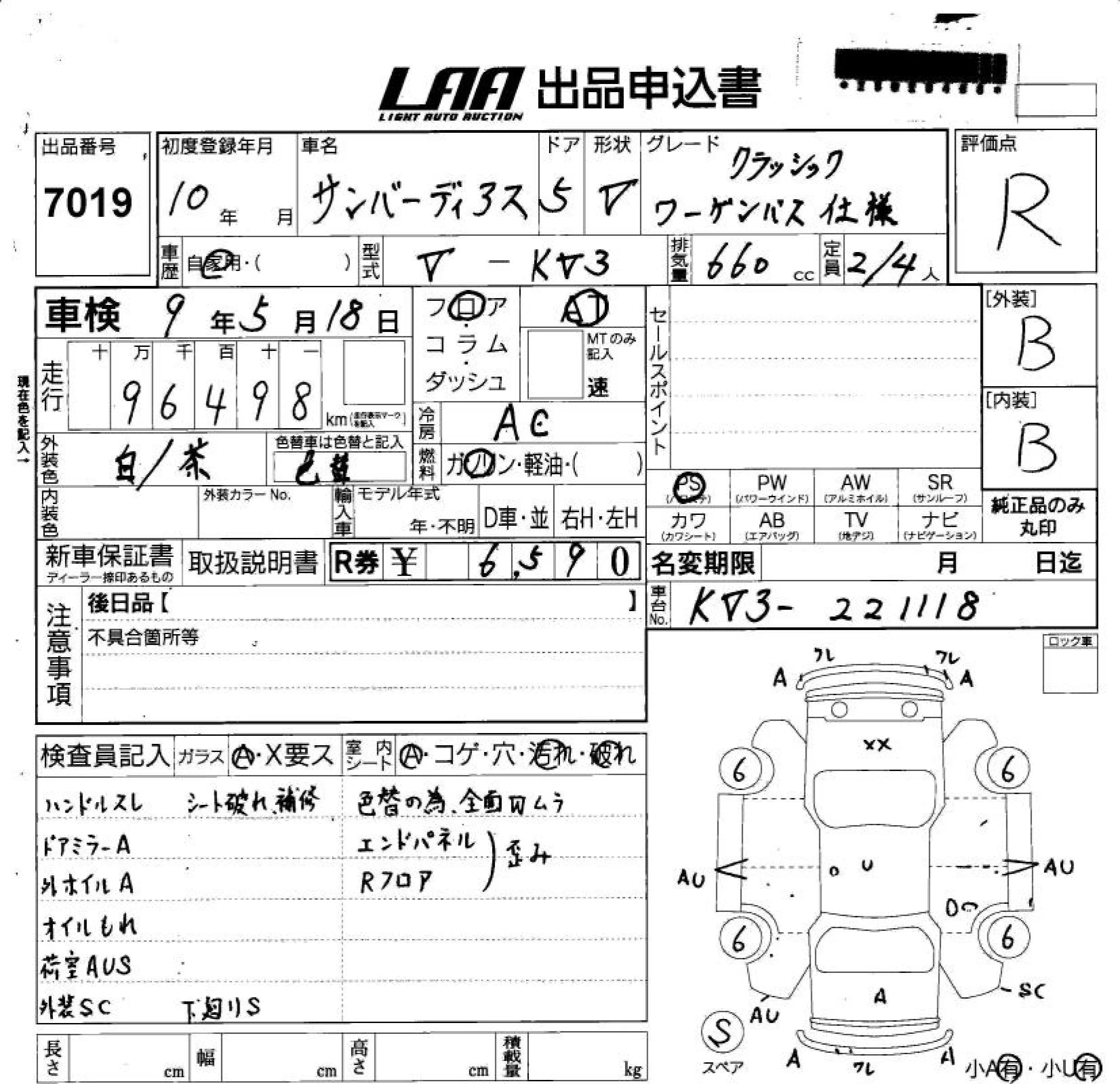 Subaru SAMBAR с аукциона Японии LAA Shikoku лот № 7019