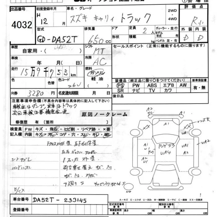 Suzuki CARRY TRUCK с аукциона Японии JU Ibaraki лот № 4032