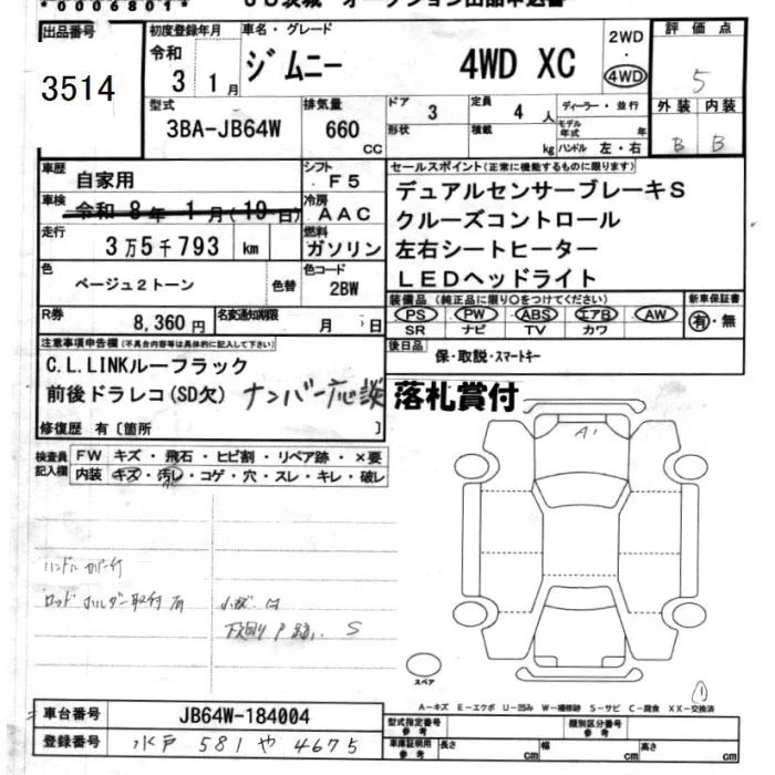 Suzuki JIMNY с аукциона Японии JU Ibaraki лот № 3514
