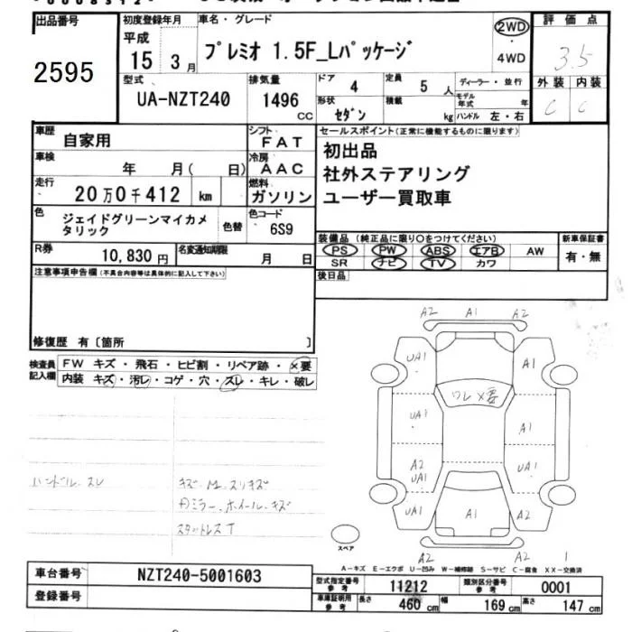 Toyota PREMIO с аукциона Японии JU Ibaraki лот № 2595