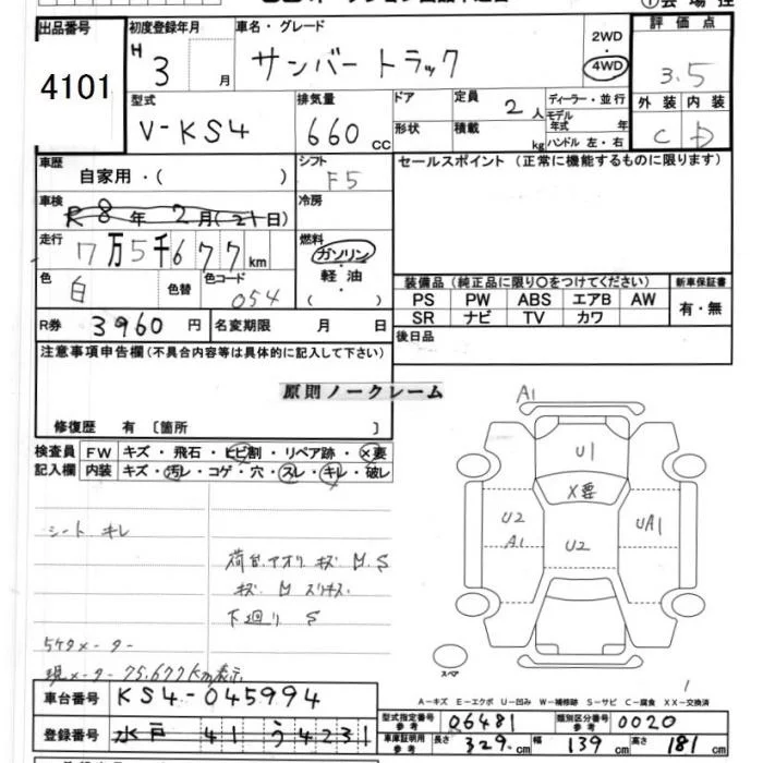 Subaru SAMBAR с аукциона Японии JU Ibaraki лот № 4101