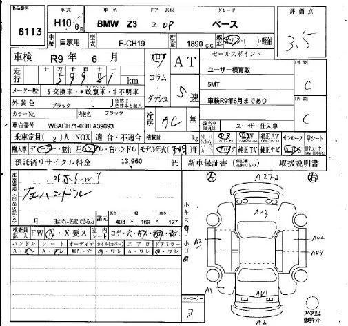 BMW Z3 SERIES с аукциона Японии IAA Osaka лот № 6113
