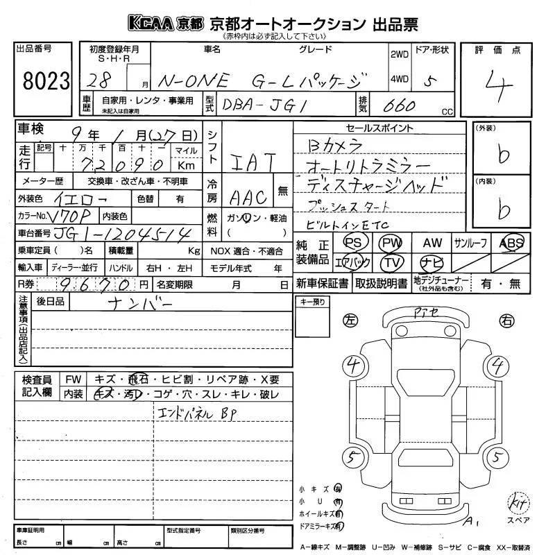 Honda N ONE с аукциона Японии KCAA Kyoto лот № 8023