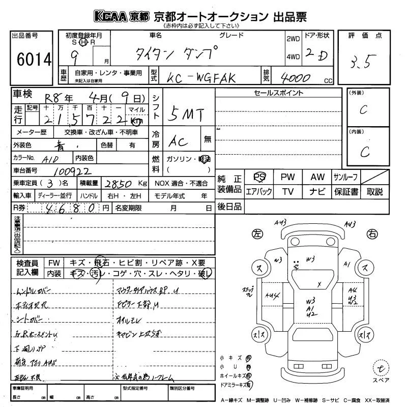 Mazda TITAN с аукциона Японии KCAA Kyoto лот № 6014