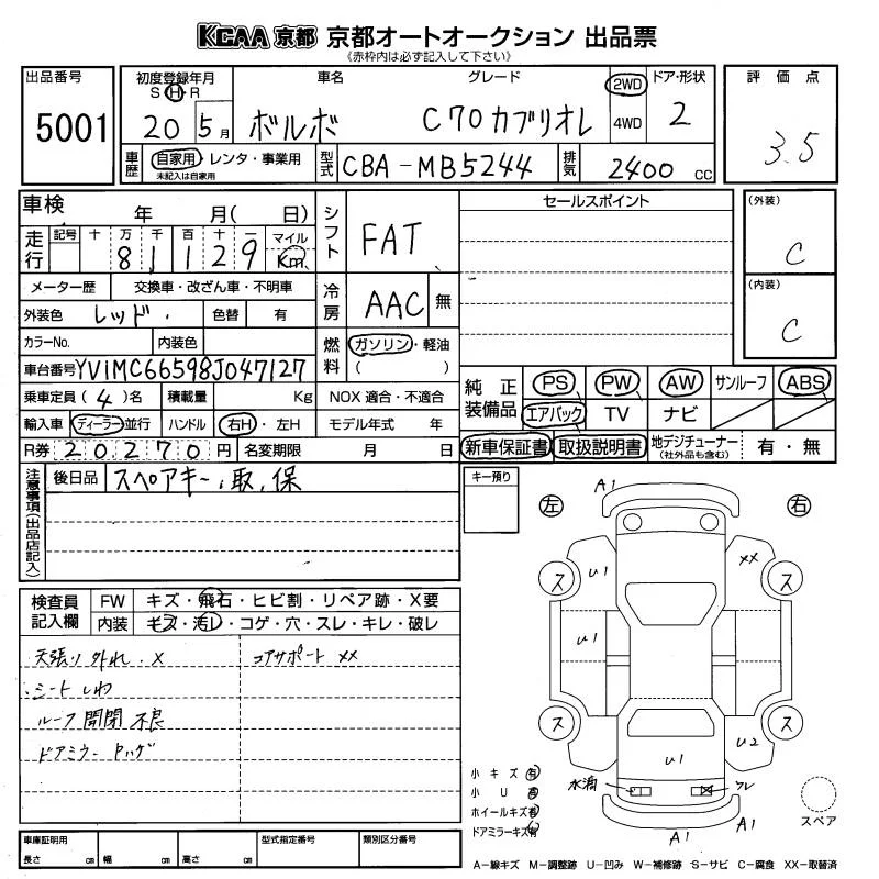 Volvo C70 SERIES с аукциона Японии KCAA Kyoto лот № 5001