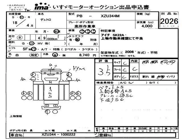Hino DUTRO с аукциона Японии Isuzu Tokyo лот № 2026
