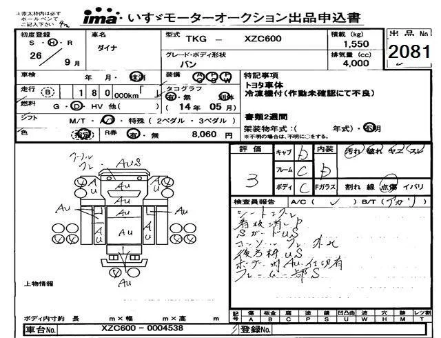 Toyota DYNA с аукциона Японии Isuzu Tokyo лот № 2081