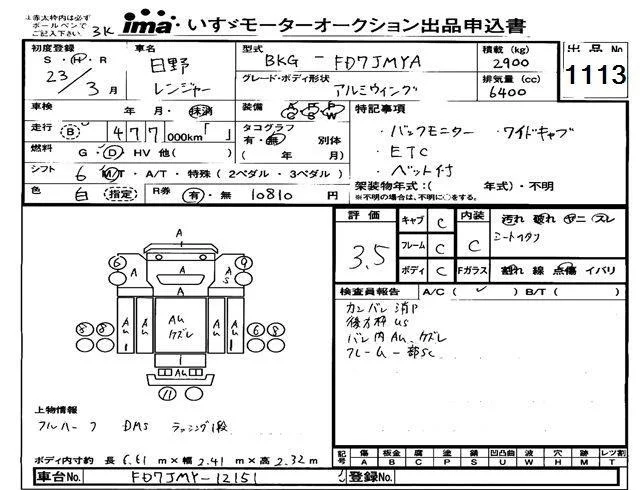 Hino RANGER с аукциона Японии Isuzu Tokyo лот № 1113