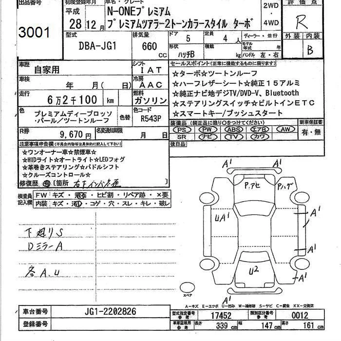 Honda N ONE с аукциона Японии JU Ishikawa лот № 3001