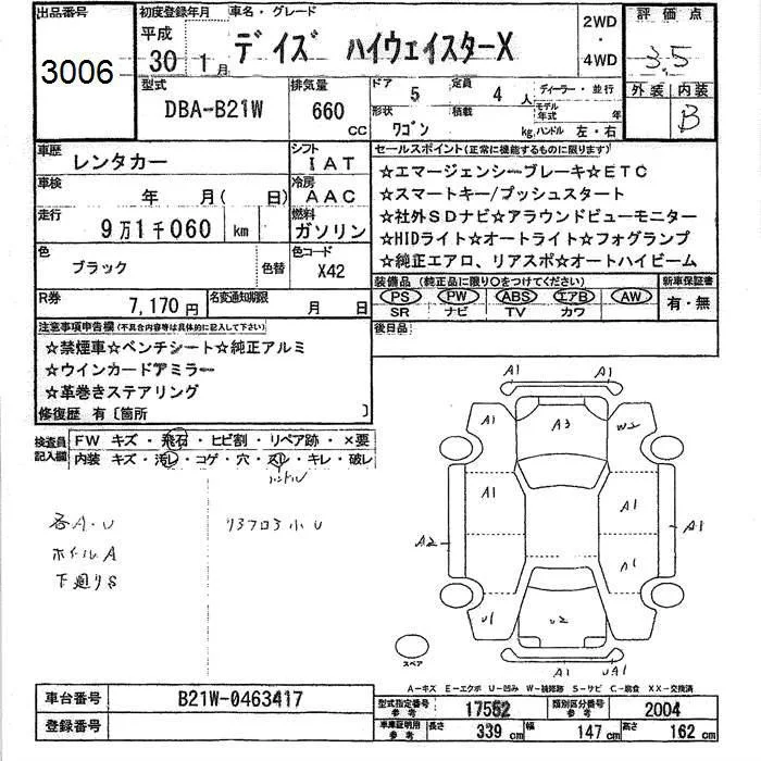Nissan DAYZ с аукциона Японии JU Ishikawa лот № 3006