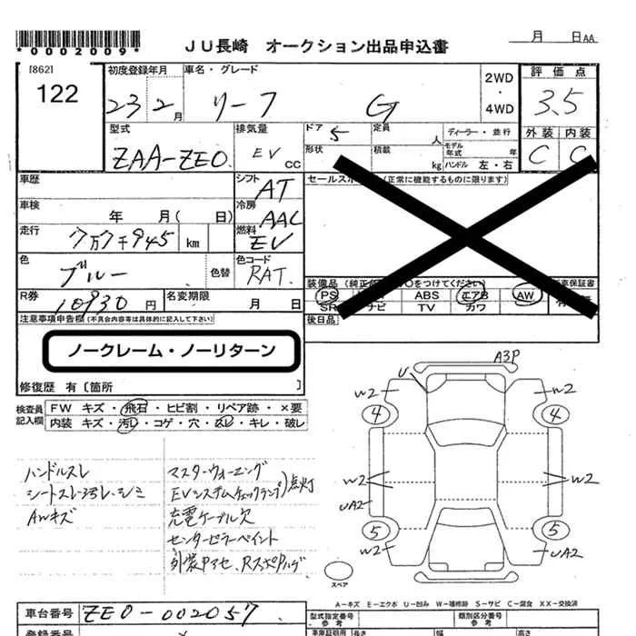 Nissan LEAF с аукциона Японии JU Nagasaki лот № 122