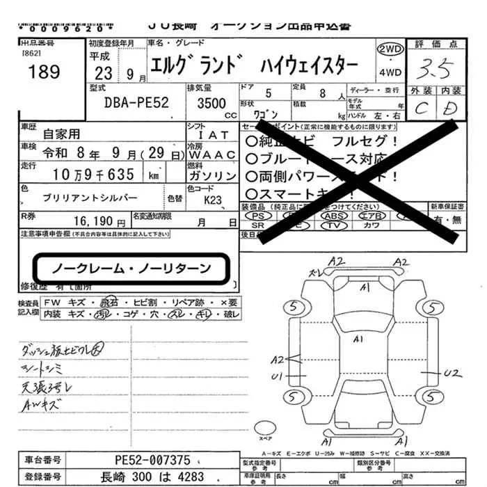 Nissan ELGRAND с аукциона Японии JU Nagasaki лот № 189