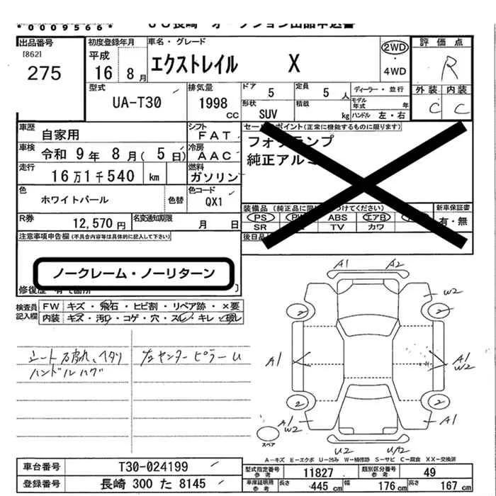 Nissan X-TRAIL с аукциона Японии JU Nagasaki лот № 275