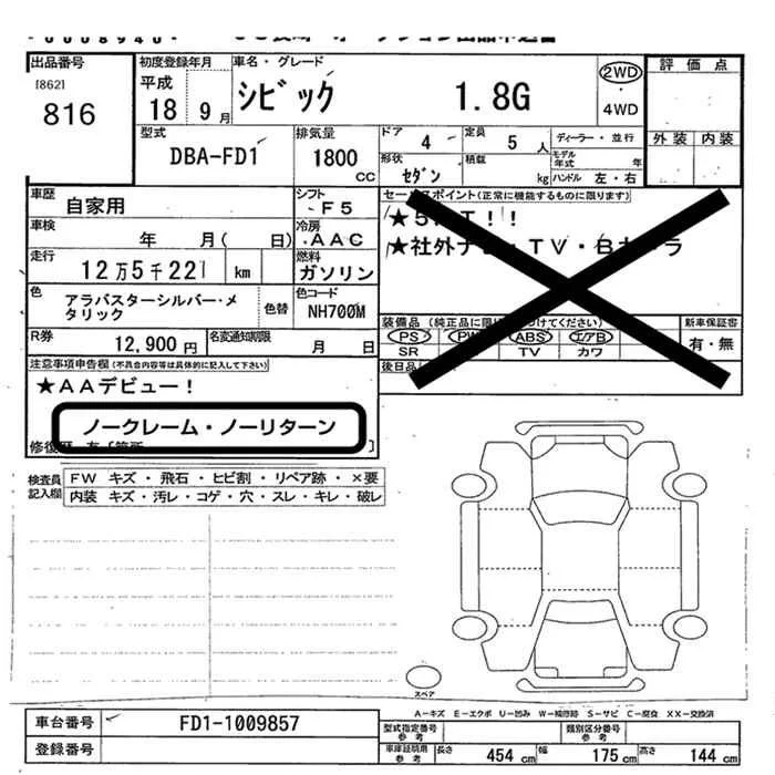 Honda CIVIC с аукциона Японии JU Nagasaki лот № 816