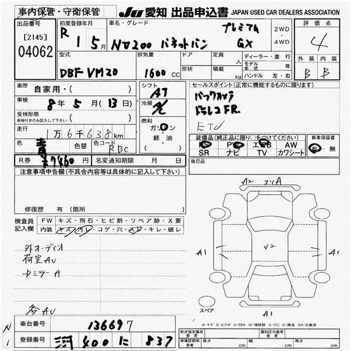 Nissan NV200 с аукциона Японии JU Aichi лот № 4062