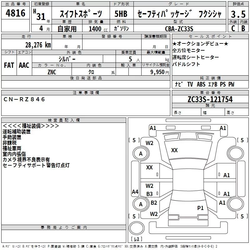 Suzuki SWIFT с аукциона Японии TAA Kanto лот № 4816