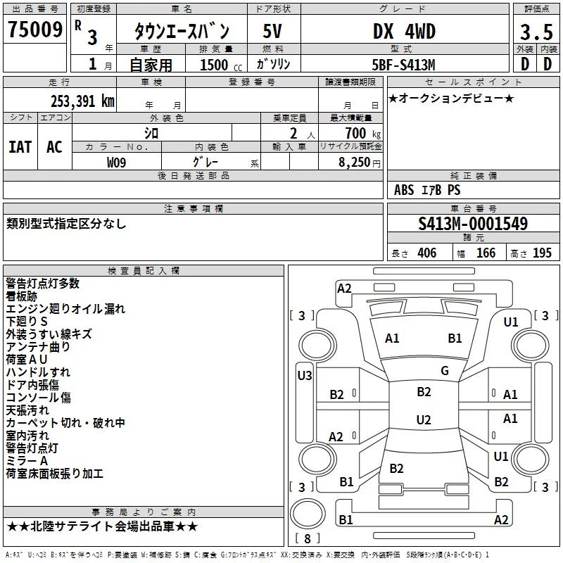 Toyota TOWN ACE VAN с аукциона Японии TAA Chubu лот № 75009