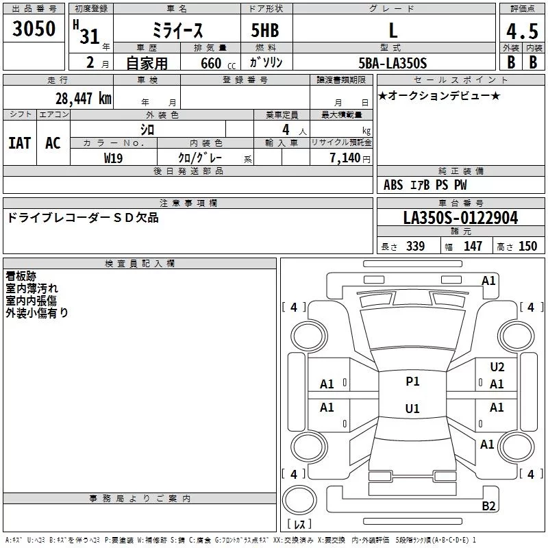 Daihatsu MIRA E S с аукциона Японии TAA Kanto лот № 3050