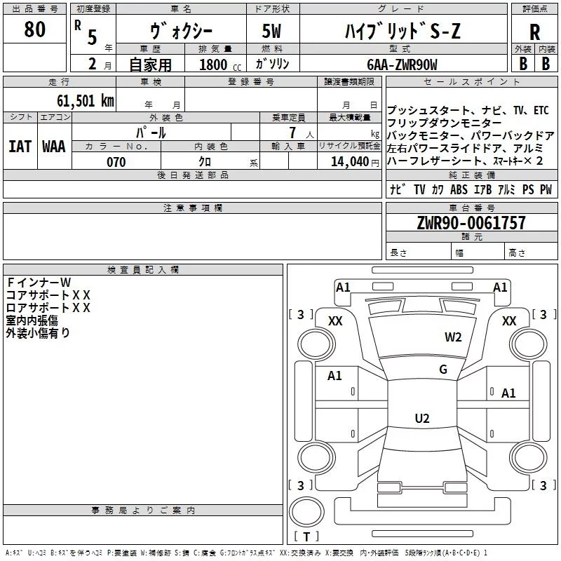 Toyota VOXY с аукциона Японии TAA Kanto лот № 80