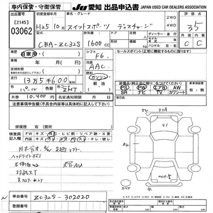 Suzuki SWIFT с аукциона Японии JU Aichi лот № 3062