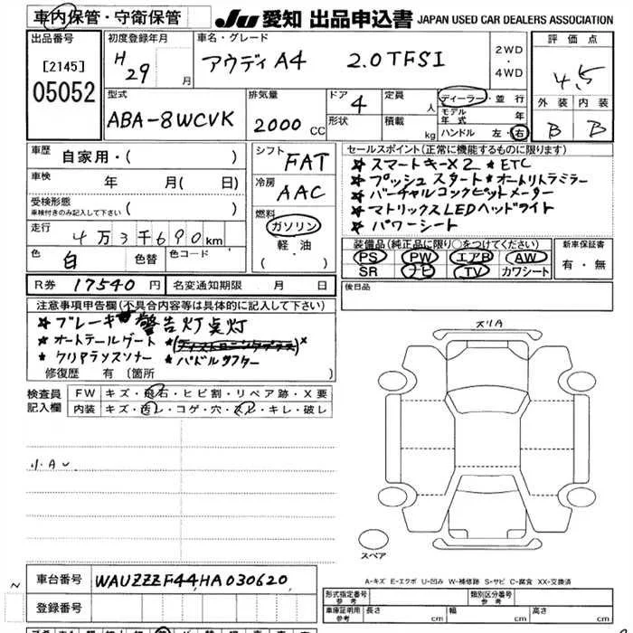 Audi A4 с аукциона Японии JU Aichi лот № 5052