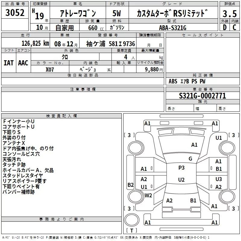 Daihatsu Atrai Wagon с аукциона Японии TAA Kanto лот № 3052