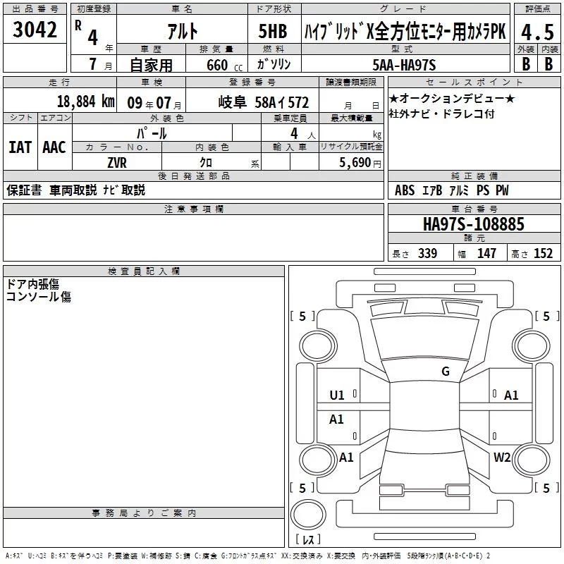 Suzuki ALTO с аукциона Японии TAA Chubu лот № 3042