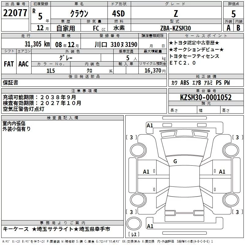Toyota CROWN с аукциона Японии TAA Kanto лот № 22077