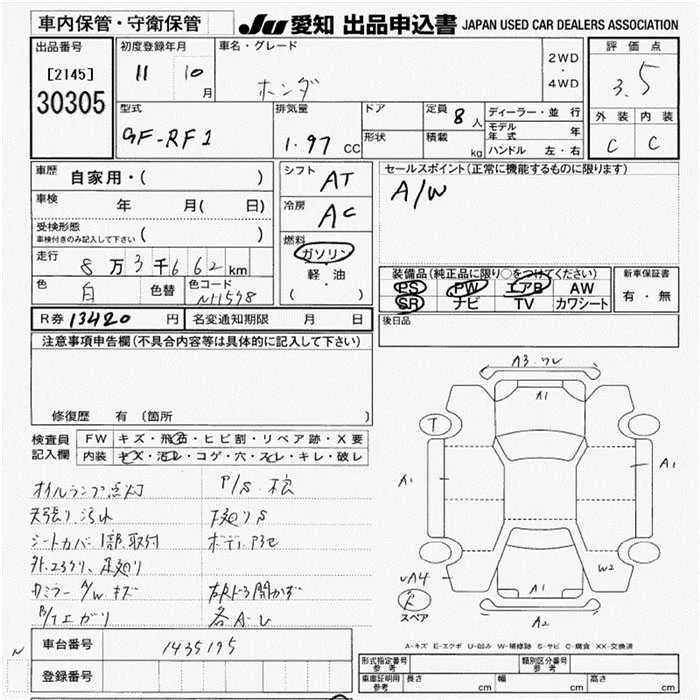 Honda STEP WAGON с аукциона Японии JU Aichi лот № 30305