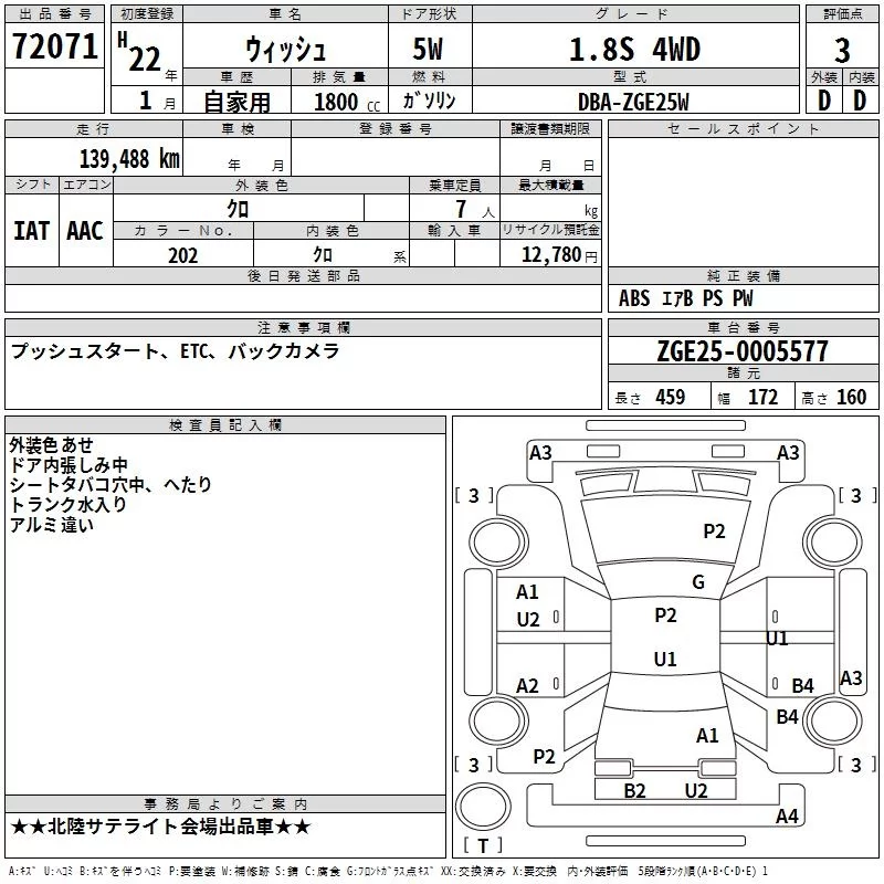 Toyota WISH с аукциона Японии TAA Chubu лот № 72071