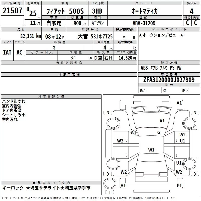 Fiat 500S с аукциона Японии TAA Kanto лот № 21507