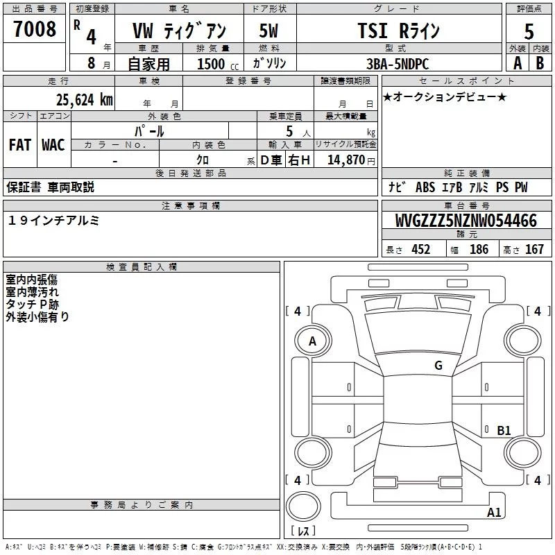Volkswagen TIGUAN с аукциона Японии TAA Kanto лот № 7008