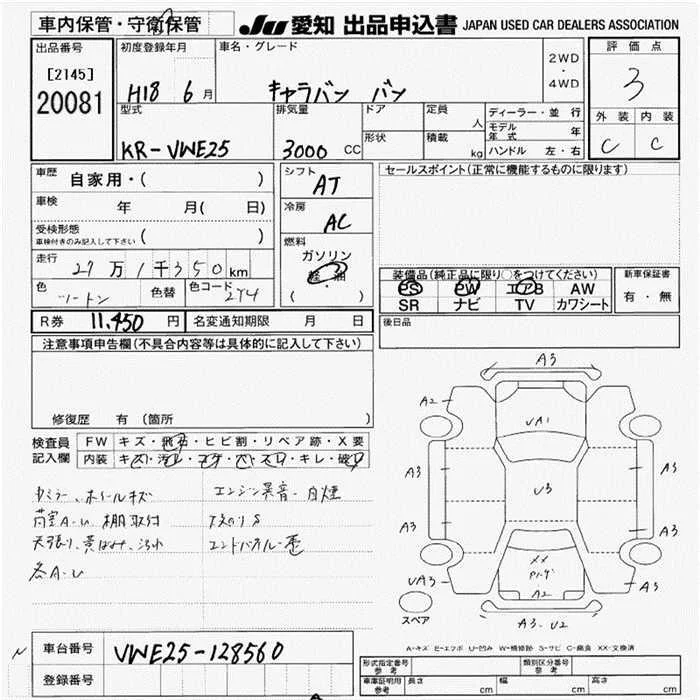 Nissan CARAVAN VAN с аукциона Японии JU Aichi лот № 20081
