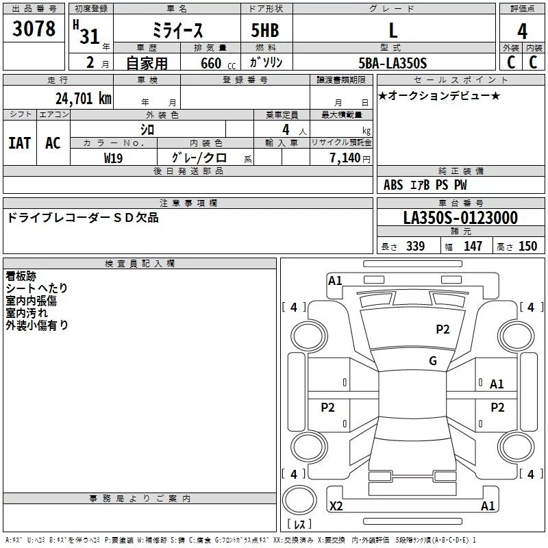 Daihatsu MIRA E S с аукциона Японии TAA Kanto лот № 3078