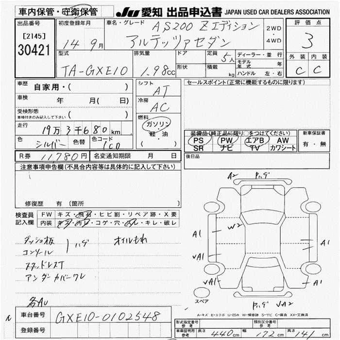 Toyota ALTEZZA с аукциона Японии JU Aichi лот № 30421