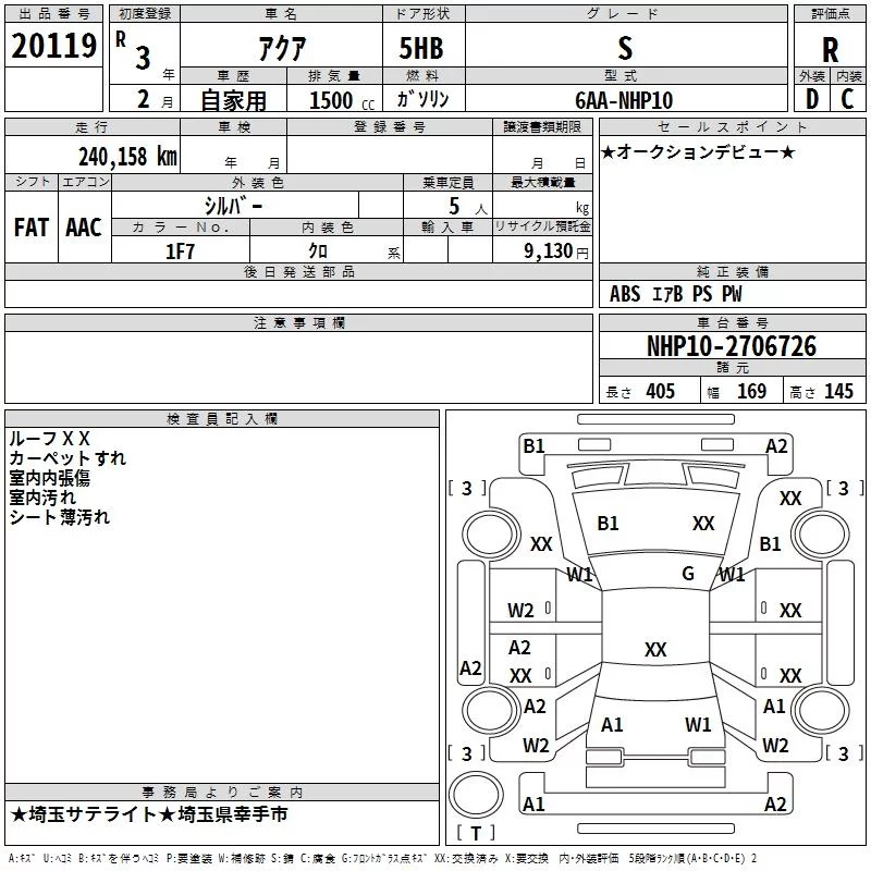 Toyota AQUA с аукциона Японии TAA Kanto лот № 20119
